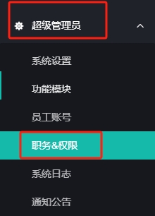 每一个职务权限又分为操作权限和栏目权限。